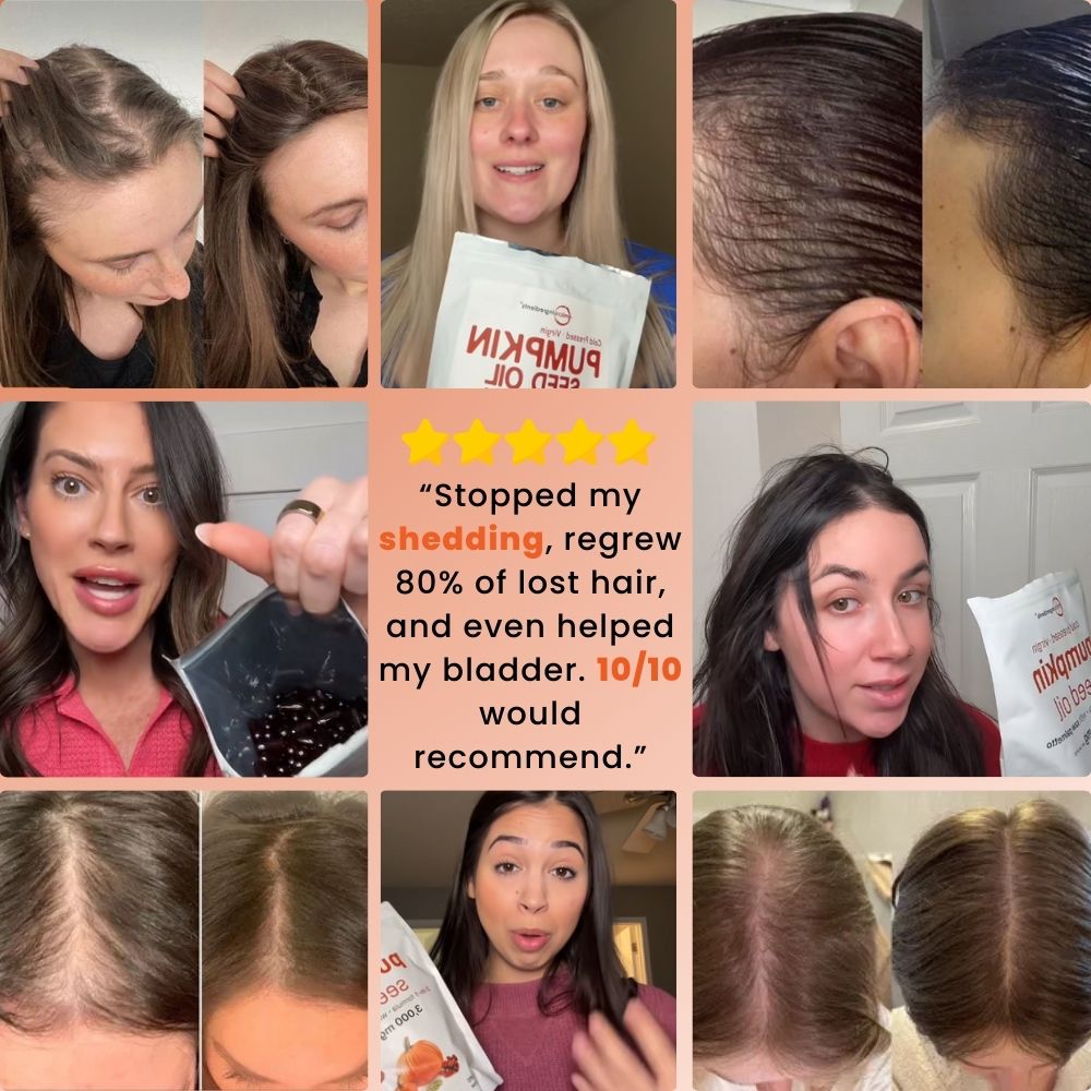 Many women experiencing menopause or hormonal fluctuations use pumpkin seed oil to help support balanced DHT levels, reduce shedding, and maintain healthy hair density during this transition phase.